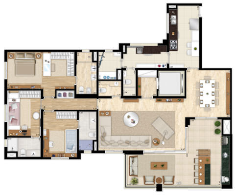 Estes ambientes foram projetados pensando na comodidade, garantindo um lar espaçoso e requintado para você e sua família.