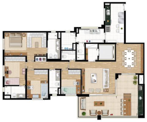 Os apartamentos no Condomínio Sólon, variando entre 137m² a 182m², oferecem uma vivência de luxo em espaços bem distribuídos e planejados.