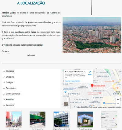 Em seguida, verá todo um estudo da localização, com detalhes sobre as proximidades com colégios, comércio, rodovias e o que mais for interessante aos olhos de um comprador.