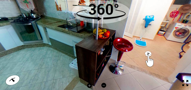 Uma visita virtual em 360° que faz quem estiver vendo se sentir dentro do imóvel, com noção sobre as dimensões dos ambientes, decoração e agregando muito valor.